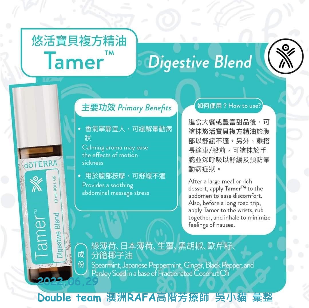 *doTERRA多特瑞的Tamer悠活寶貝複方精油成份內也有添加綠薄荷油喔,夏天天氣炎熱食慾容易較不好、頭昏腦脹、消化系統容易有不適感、反胃想吐時,小貓芳療師最喜歡用這瓶Tamer悠活寶貝複方精油滾在頭部的太陽穴或人中嗅吸或塗抹在腹部,使用後有時會打了個嗝就覺得整個人舒服多了,是我的“知胃”精油之一!(如果你也跟我一樣不喜歡DigestZen樂活精油的味道,強烈推薦一定要試試doTERRA多特瑞的Tamer悠活寶貝複方精油!)